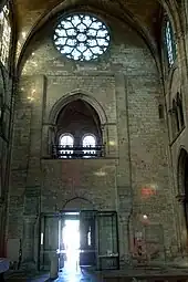 - « Salle au-dessus du narthex », notice no APMH045349, sur la plateforme ouverte du patrimoine, base Mémoire, ministère français de la Culture, « Premier étage du narthex, pilier », notice no APMH046046, sur la plateforme ouverte du patrimoine, base Mémoire, ministère français de la Culture ; voir aussi chez Alfred-Nicolas Normand, « Dépôt lapidaire : chapiteaux et têtes », notice no APNRM01237, sur la plateforme ouverte du patrimoine, base Mémoire, ministère français de la Culture.