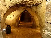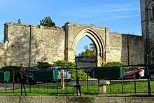 - Albert Fossard fait certainement erreur on y voyant les vestiges d'une simple galerie de circulation. Il mentionne implicitement ces baies : « D'une salle qui, primitivement n'était pas en sous-sol, appelée de nos jours salle capitulaire, on allait à l'église par une galerie encore apparente, quoique effondrée, et montant par des paliers que suivent les décrochements des fenêtres ; les chambranles de celles-ci se voient parfaitement à l'extérieur, dans la partie du mur vers la rivière » (1934, op. cit., p. 75).