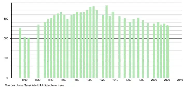 1 317 hab. (2021 en diminution de 4,22 % par rapport à 2015)