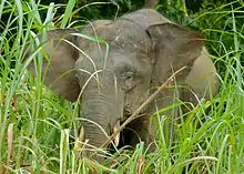 L'éléphant de Bornéo est aussi remarquablement docile et passif, une raison pour laquelle certains scientifiques pensent qu'il était issu d'une collection nationale d'éléphants domestiqués[1],[2].