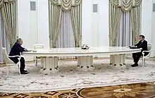 Alors qu'Emmanuel Macron doit officialiser sa décision le à 18 h, l'escalade du conflit russo-ukrainien, puis l'invasion de l'Ukraine par la Russie le , le poussent à reporter l'annonce de sa candidature à un second mandat à la présidence de la République[72],[73]. L'annonce a lieu le au soir, vingt-quatre heures avant la date limite, par le biais d'une Lettre aux Français.