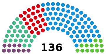 | 136 députés de l'Assemblée (majorité absolue : 69 députés) | ||||||||||||||