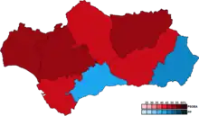 | Parti socialiste ouvrier espagnol d'Andalousie (PSOE-A) | 2 178 296 | 48,41 | 56 | |||||||||||