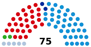 | 75 députés du Parlement (majorité absolue : 38 députés) | ||||||||||||||