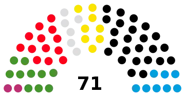 | Parti | Voix | % | +/- | Sièges | +/- | |
