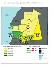 Les candidats indépendants obtiennent 27,19 % des sièges des conseillers municipaux. L’opposition à l’ancien régime, regroupée au sein de la Coalition des forces du changement démocratique (CFCD) a remporté les deux plus grandes villes Nouakchott et Nouadhibou[3].