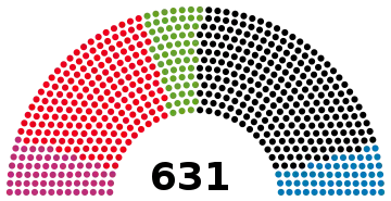 À l'issue du dépouillement, l'intégralité des 598 sièges est répartie au scrutin proportionnel de Sainte-Lagüe sur la base des secondes voix entre les partis politiques totalisant plus de 5 % des suffrages exprimés au niveau national ou qui l'ont emporté dans au moins trois circonscriptions.