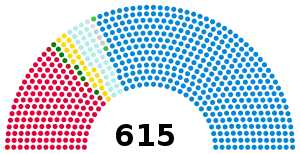 | 615 sièges de la Chambre des communes (Majorité absolue : 308 sièges) | ||||||||||||||