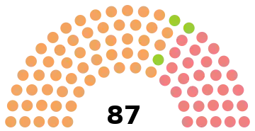 | 87 sièges de l'Assemblée législative (Majorité absolue : 44 sièges) | ||||||||||||||