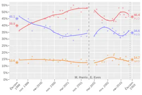 | Élections de 1999 | 39,9 | 45,1 | 12,6 | 0,7 | 1,7 | ||||