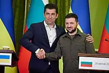- (bg) Видка Атанасова, « Президентът критикува кабинета за Украйна и го предупреди да внимава за газа », sur Dnevnik, (consulté le ).