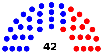 | 42 sièges de l'Assemblée (Majorité absolue : 22 sièges)  | ||||||||||||||