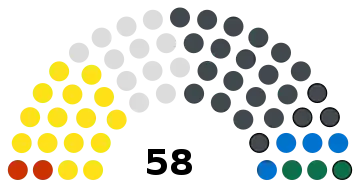 | 53 des 58 sièges de l'Assemblée nationale (majorité absolue : 30 sièges) | ||||||||||||||