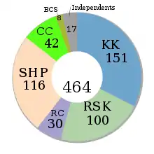 | Club des réformes (革新倶楽部, Kakushin Kurabu) | 53 | 30 | 6,5 |