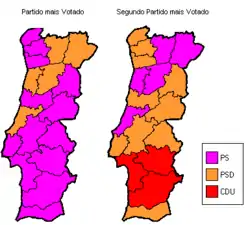 | Parti populaire (CDS/PP) | 592 778 | 10,77 |  3,31 | 21 |  9 | |||||||||
