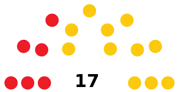 | 17 sièges de l'Assemblée (Majorité absolue : 9 sièges) | ||||||||||||||