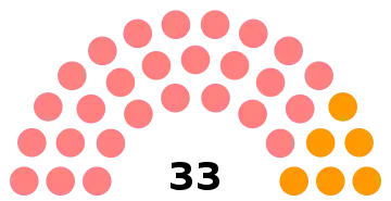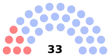 - 33 sièges à pourvoir au conseil municipal (population légale 1999 : 9 608 habitants)