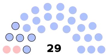 - 29 sièges à pourvoir au conseil municipal (population légale 1999 : 7 770 habitants)