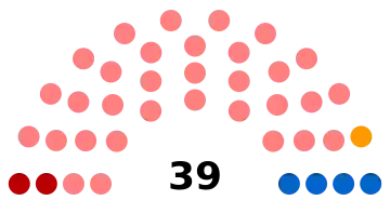 - 39 sièges à pourvoir au conseil municipal (population légale 1999 : 35 518 habitants)
