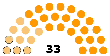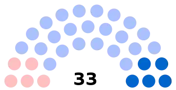 - 33 sièges à pourvoir au conseil municipal (population légale 2011 : 13 934 habitants)