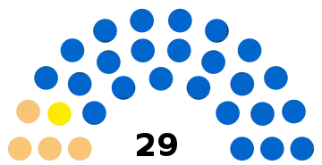- 29 sièges à pourvoir au conseil municipal (population légale 2017 : 6 418 habitants)
