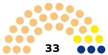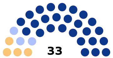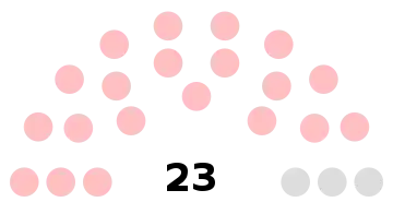 | Conseillers municipaux | 7 | 11 | 15 | 19 | 23 | 27 | 29 | 33 | 35 | 39 | 43 | 45 |