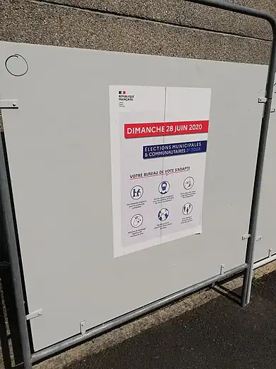 385 communes sur 445 sont entièrement pourvues au 1er tour[16]. Le décret publié au Journal officiel du fixe la date d'entrée en fonction des conseils municipaux élus au complet lors du premier tour des municipales au . La première réunion du conseil municipal doit se tenir entre 5 et 10 jours après leur date d’installation, soit entre le 23 et le .