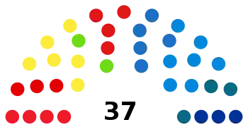 | Parti démocrate | 26 864 | 34,62 | 15 | Centre gauche | ||||