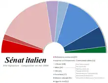 Aux 308 sénateurs élus dans les régions s'ajoutent 6 sénateurs pour les Italiens de l'étranger, 1 sénateur élu au scrutin majoritaire pour la Vallée d'Aoste, 5 sénateurs à vie (au maximum) nommés par le président et les anciens présidents de la République.
