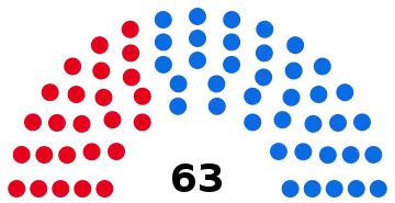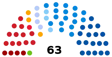 | 63 sièges du conseil régional (Majorité absolue : 32 sièges)  | ||||||||||||||
