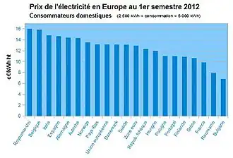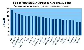 Depuis l'ouverture à la concurrence promue par la Commission européenne, le marché de l'électricité en France reste dominé par la société nationale Électricité de France (EDF), malgré les gains croissants de part de marché des fournisseurs alternatifs, dont les principaux sont Engie, TotalEnergies et Eni.