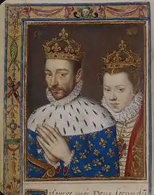 Charles IX et Élisabeth d'Autriche, roi et reine de France (vers 1572). Miniature du livre d'heures de Catherine de Médicis.