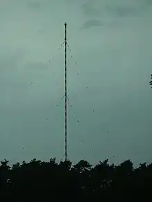 L'autre mât en acier de 210 mètres a été converti pour qu'il puisse émettre également en grandes ondes pour le programme de radio Wolga.