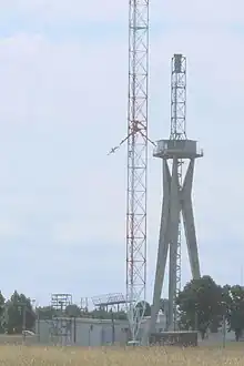 Photo 2a. Mât en béton armé supportant autrefois les antennes de Télé-Sarre.