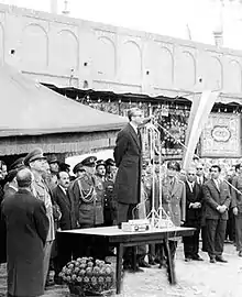 Le 1er avril 1963, le Shah alla, à la fin des célébrations du nouvel An en pèlerinage à Mashhad. Dans un discours, il critique durement Khomeini et le Front National : « Les bons musulmans de l'Iran qui respectent les véritables intentions du Coran doivent rentrer chez eux. Ils doivent comprendre que ce qu'on leur raconte est faux, inventé par certaines personnes pour remplir leurs propres poches.... Il y a deux groupes de personnes qui sont contre notre politique: Il y a même la réaction noire et les traîtres rouges (l'islam et le communisme). Nous avons privé (grâce à nos réformes) les traîtres rouges de leurs arguments. Ils ont perdu leur chemin et sont restés sans voix. Il reste les fidèles des réactionnaires noirs. Comme des perroquets, ils répètent ce qu'ils ont appris d'eux, sans se référer aux développements religieux réels[13]. »