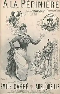 - A la Pépinière : chansonnette comique, paroles de Émile Carré ; musique de Abel Queille ; créée par Mlle Jeanne Bloch à la Scala, éditeur : P. Feuchot, Paris 1885.