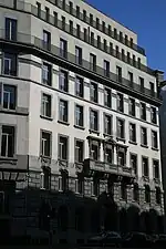 - Ancienne banque de Paris et des Pays-Bas (rues de la Chancellerie 17-17a et rue des Colonies 29-31 à Bruxelles, 1909-1911) [7] : nouvelle aile d'entrée à toiture mansardée et belvédère (rue des Colonies 31);
