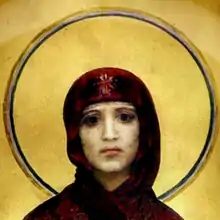 « Dans notre famille nous savions que nous ne pouvions pas pleurer durant les grands repas de famille chez grand-mère. Pourtant elle pouvait sans ciller renverser du thé chaud sur quelqu'un ou jeter une tasse par terre pour la casser. Elle était très autoritaire, une Saltykova en son genre. Sa fille Éléna a gâché sa vie à cause de sa mère. Un artiste alors peu connu, Mikhaïl Nesterov, était tombé amoureux d'Éléna et lui avait même déjà fait des promesses. Mais Émilia, la mère, s'est opposée à cette idylle, prétextant que sa fille méritait un meilleur parti. Le résultat c'est que Éléna ne s'est pas mariée[5]. En fait La Grande martyr Varvara dans l'iconostase de droite de l'église Vladimirski de Kiev a été réalisée par Nesterov avec Éléna Prakhova comme modèle. Apprenant cela, la femme du gouverneur-général de Kiev Mikhaïl Dragomirov, s'exclame : “Qu'en ai-je à faire d'aller dire mes prières devant Éléna Prakhova !?” »