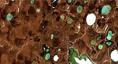 Les zones humides contribuent à hauteur d'environ 167 Tg de méthane à l'atmosphère par an[4]. Dans l'inventaire mondial des émissions de méthane[5], certaines zones humides (rizières, bouchon vaseux de nombre d'estuaires, tourbières en feu...) constituent la plus grande source naturelle de méthane atmosphérique au monde, tout en étant des puits de carbone. Or, dans le contexte du dérèglement climatique, et dans le contexte du réchauffement global, ces relargages pourraient encore beaucoup augmenter ; ils sont donc un sujet de préoccupation majeur concernant la prospective climatique et la lutte contre le Réchauffement climatique[6],[7],[8]. Les zones humides sont caractérisées par des sols hydromorphes, c'est-à-dire gorgés d'eau et des communautés distinctives d'espèces de plantes et d'animaux qui ont évolué et se sont adaptées à la présence constante d'eau. Quand le sédiment est riche en matière organique, pauvre en oxygène et saturé en eau, des conditions propices à la production de méthane par certains microbes sont réunies.