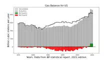 | Exportation nette[s 4] | 5e | 2022 | 104,3 | Gm3 | 10,8 % | 1er : Russie (157,4 Gm3, 16,3 %), 2e : Qatar (134,2 Gm3, 13,9 %) | |