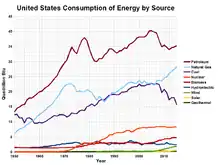 Le graphique ci-dessus[6] met en évidence la succession des énergies dominantes aux États-Unis :