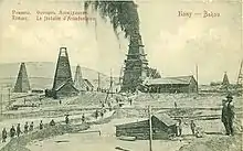 La présence de pétrole est connue de longue date en Azerbaïdjan, notamment dans la péninsule Abşeron, où le pétrole affleure naturellement et est utilisé artisanalement depuis des siècles. L'exploitation industrielle est entamée par des pionniers américains en 1870[2]. Le gisement de Balakhany-Sanbunchi, découvert en 1871 et estimé par l'ASPO à 2,5 milliards de barils, est l'un des tout premiers gisements géants connus dans le monde[3]. Rapidement, l'exploitation se développe et la région de Bakou rivalise avec la production de Pennsylvanie. La production est en partie aux mains de Branobel, c'est-à-dire de la famille Nobel, qui achemine son pétrole en Suède à travers l'Empire russe. La famille Rothschild développe plus tard d'autres gisements, et exporte sa propre production via le port de Batoumi sur la mer Noire[2].
