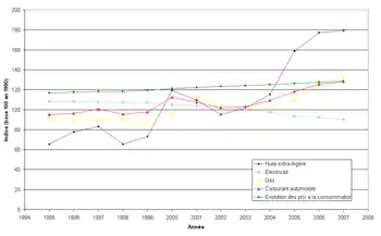 En 2022, la consommation finale de produits pétroliers a été de 8,09 Mt (millions de tonnes), dont 5,97 Mt de carburants et 2,12 Mt de combustibles ; elle a peu varié jusqu'en 2010 (11 à 12 Mt/an), puis a baissé brutalement de 7,9 % en 2011 ; après une légère remontée en 2012-2013, elle a chuté à nouveau de 9 % en 2014 ; de 2019 à 2022, elle a encore reculé de 14,6 %. Le pic de consommation avait été atteint en 1992 avec 12,295 Mt[89]. Sur le total des produits consommés, l'huile extra-légère (fioul domestique) représente 25 % (en recul progressif, avec des fluctuations selon les températures : c'est elle qui est responsable des chutes de consommation de 2011 et 2014, dues à des hivers très doux ; sa consommation a baissé de 71 % par rapport à 1973) ; l'essence représente 25 %, le carburant diesel 32 % (en hausse constante jusqu'en 2019, sauf pendant la décennie 1990 : sa part était de 5,5 % en 1975), les carburants d'aviation 17 % (eux aussi en progression constante depuis 30 ans jusqu'en 2019, sauf dans les années 1990), le coke de pétrole 0,3 %, les autres produits pétroliers (gaz liquéfié, pétrole lampant, White Spirit) 0,8 %[90].