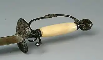 Tant dans sa forme que dans son usage, elle est très semblable à l'actuelle épée d'escrime (mis à part la garde), si bien qu'elle est fréquemment confondue avec sa variante sportive.