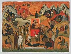 Fresque du XIVe siècle d'Éphrem le Syriaque (détail), église de l'Assomption dans le monastère de la protection, Mont-Athos.
