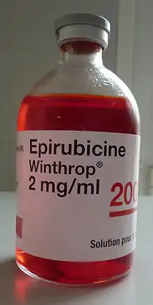 L'épirubicine est une chimiothérapie de la famille des anthracyclines utilisé dans le traitement des cancers. Il s'agit d'un isomère de la doxorubicine (4'-épidoxorubicine) qui se caractérise par la perte d'une partie de la cardiotoxicité. Cette molécule agit comme intercalant de l'ADN.