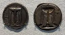 Au VIe siècle des cités se mettent à frapper des pièces de monnaie, dont les images renvoient à leurs symboles, qui leur permettent d'affirmer leur identité et leur prestige, surtout si elles circulent loin[90] ; il se peut du reste que la monnaie ait à cette époque une fonction politique plus qu'économique, étant frappée avant tout pour financer des besoins publics et non pour faciliter les échanges quotidiens[91]. Les cités disposent plus largement de « coutumes » (nomina), qui comprennent leurs cultes, leur calendrier sacré, leurs magistratures religieuses, civiles, judiciaires et militaires, leur organisation en sous-groupes tels que les tribus, etc., qui forgent leur identité et sont essentielles à leurs rythmes et activités au quotidien. Elles renvoient souvent aux origines des cités, puisque ces coutumes sont similaires entre cités d'un même peuple (Ioniens, Doriens) et entre la métropole et ses colonies[92].