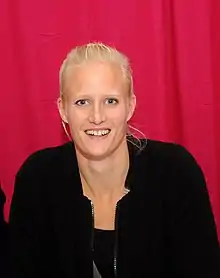 En 2003, aux mondiaux de Paris, la Suédoise Carolina Klüft devient la deuxième heptathlonienne après Jackie Joyner-Kersee à réaliser une performance supérieure à 7 000 pts lors d'un championnat du monde d'athlétisme. Elle remporte l'épreuve du saut en hauteur, du 200 m, du saut en longueur et du 800 m et totalise 7 001 pts à l'issue des deux journées de compétition[27]. Eunice Barber, qui s'impose dans l'épreuve du 100 m haies, remporte la médaille d'argent avec 6 755 pts, devançant Natallia Sazanovich, médaillée de bronze avec 6 524 pts. Denise Lewis termine à la 5e place.