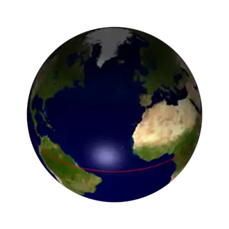 | Océan Pacifique | 0° 00′ S, 91° 13′ O | 0° 00′ S, 80° 07′ O | 1 236 |