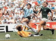 Lors du Mundial '82, la RFA débute délicatement par un revers-surprise contre l'Algérie (1-2) mais elle se reprend vite avec un succès 4-1 contre le Chili (avec un hat-trick de Karl-Heinz Rummenigge). Elle termine en tête de son groupe grâce à une victoire contre l'Autriche, sur un score de 1-0 permettant à cette dernière d'être également qualifiée, match soupçonné d'arrangement, car tout s'est joué à la différence de buts entre l'Allemagne, l'Autriche et l'Algérie qui avait joué son dernier match la veille : c'est le "match de la honte" (ou "honte de Gijón"). Au second tour, après un nul 0-0 contre l'Angleterre, la RFA bat l'Espagne 2-1 mais doit attendre le résultat du match Angleterre-Espagne, qui lui est finalement favorable (score nul), pour être assurée de la première place du groupe, qualificative pour les demi-finales. La RFA parvient à se qualifier pour la finale après un nouveau match de légende remporté aux tirs au but face à la France à Séville (3-3 ap). Fatigués physiquement et nerveusement par ce match, les Allemands ne peuvent rien faire en finale face à l'Italie (1-3, but de Paul Breitner).
